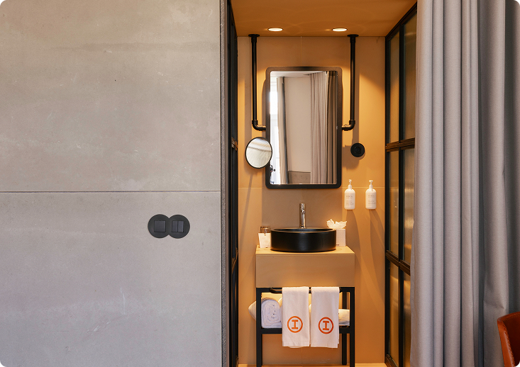 You’ll also find everything you need to unwind: a 43” IRoom Stream TV, Free Wi-Fi, Buddy Desk, Bed Snug Led Lights, Digital safe, IN:BOX Bar, Nespresso machine, Induction kettle, Slippers, UsB Chargeloo, Valera hairdryer and a full set of Zero% toiletries with finest, gentlest ingredients combine with a fresh, yet subtle fragrance to ensure an eco-friendly and luxurious bathing experience.