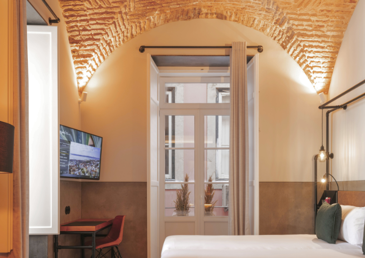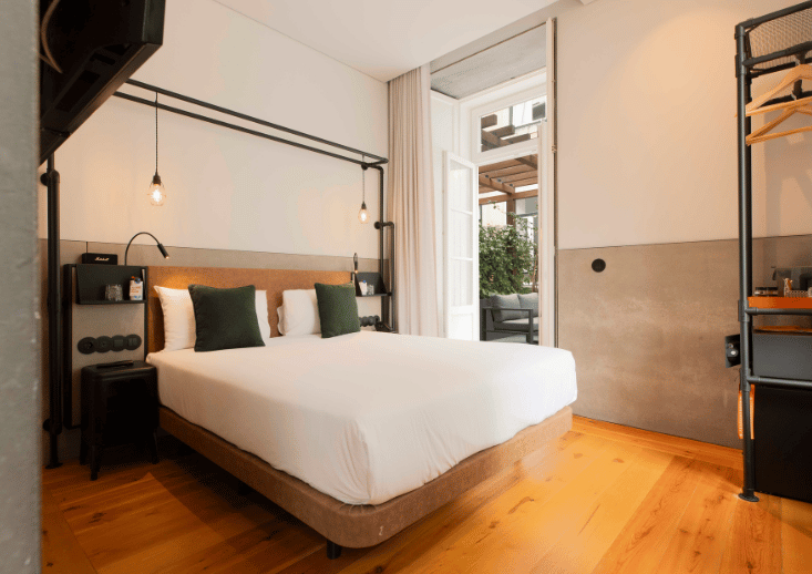 Acomódate en una habitación envuelta en cálidos tonos terracota que te transportarán a una relajada puesta de sol en Lisboa en la que podrás dormir plácidamente.