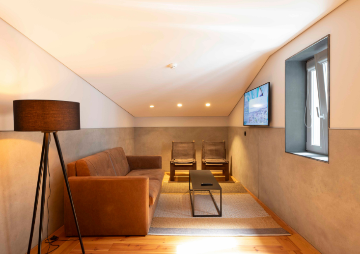 It doubles as a penthouse, with a cozy living area, sofa bed, 55” Iroom Stream TV, a fully equipped kitchenette, and a dining table for six overlooking a bold mural by Portuguese artist OSIR. Each bedroom features a queen-size bed, with a total of 75 sqm of relaxed, home-style comfort.